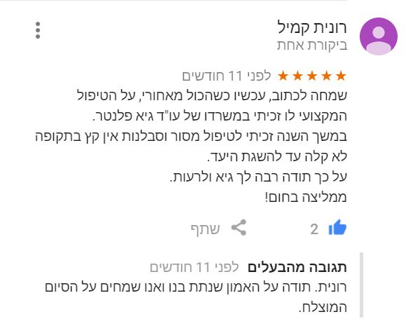"...הטיפול היה מקצועי, הסתיים בהצלחה ומעל הכל זכיתי לליווי אישי צמוד ואנושי..."